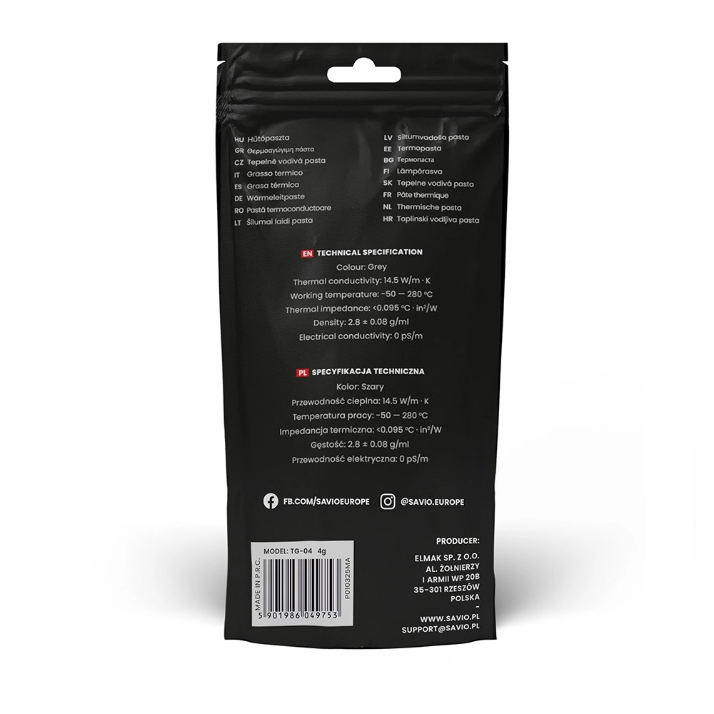 Pasta termoconductoare Savio Glacier TG-04 este alegerea ideală pentru asigurarea eliminării optime a căldurii între procesor și răcitor. Această pastă, cu o conductivitate termică excelentă de 14,5 W/mK, umple neregularitățile microscopice ale suprafeței, sporind eficiența răcirii.