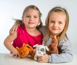 Aceste animăluțe pufoase, din pluș plăcut la atingere, vor fi îndrăgite pe loc de copii. La apăsarea burticii emit un sunet animal specific, care susține dezvoltarea auzului și a imaginației. Datorită dimensiunii compacte de 18–22 cm, sunt ideale pentru mânuțele copiilor și pentru călătorii.