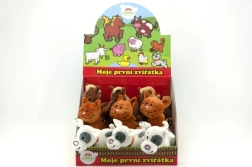 La apăsarea burticii, animăluțul redă un sunet autentic – copiii recunosc ușor cum miaună pisica, latră câinele sau nechează calul.