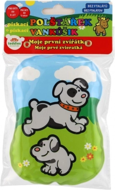 Drăguță perniță piuitoare pentru bebeluși, cu imagini cu animăluțe, susține primele descoperiri ale lumii. Este potrivită de la 0 luni, fără ftalați și corespunzător certificată pentru joacă sigură și liniștire.