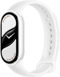 Brățara oferă un design elegant din ceramică cu o curea albă din cauciuc fluorurat și este rezistentă la apă până la 5 ATM.