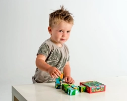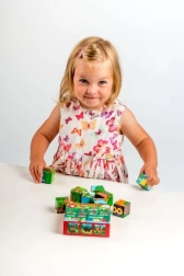 Cuburi din lemn cu imagini colorate de animale, ideale pentru cei mai mici copii. Ajută la dezvoltarea raționamentului logic, imaginației și motricității fine.