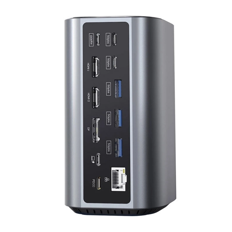 Bucurați-vă de confort maxim și eficiență cu stația de andocare Blitzwolf BW-TH15, dotată cu 17 interfețe diverse. Acest instrument versatil permite conectarea și gestionarea mai multor dispozitive simultan, fie ele monitoare, stocare de date sau accesorii audio.
