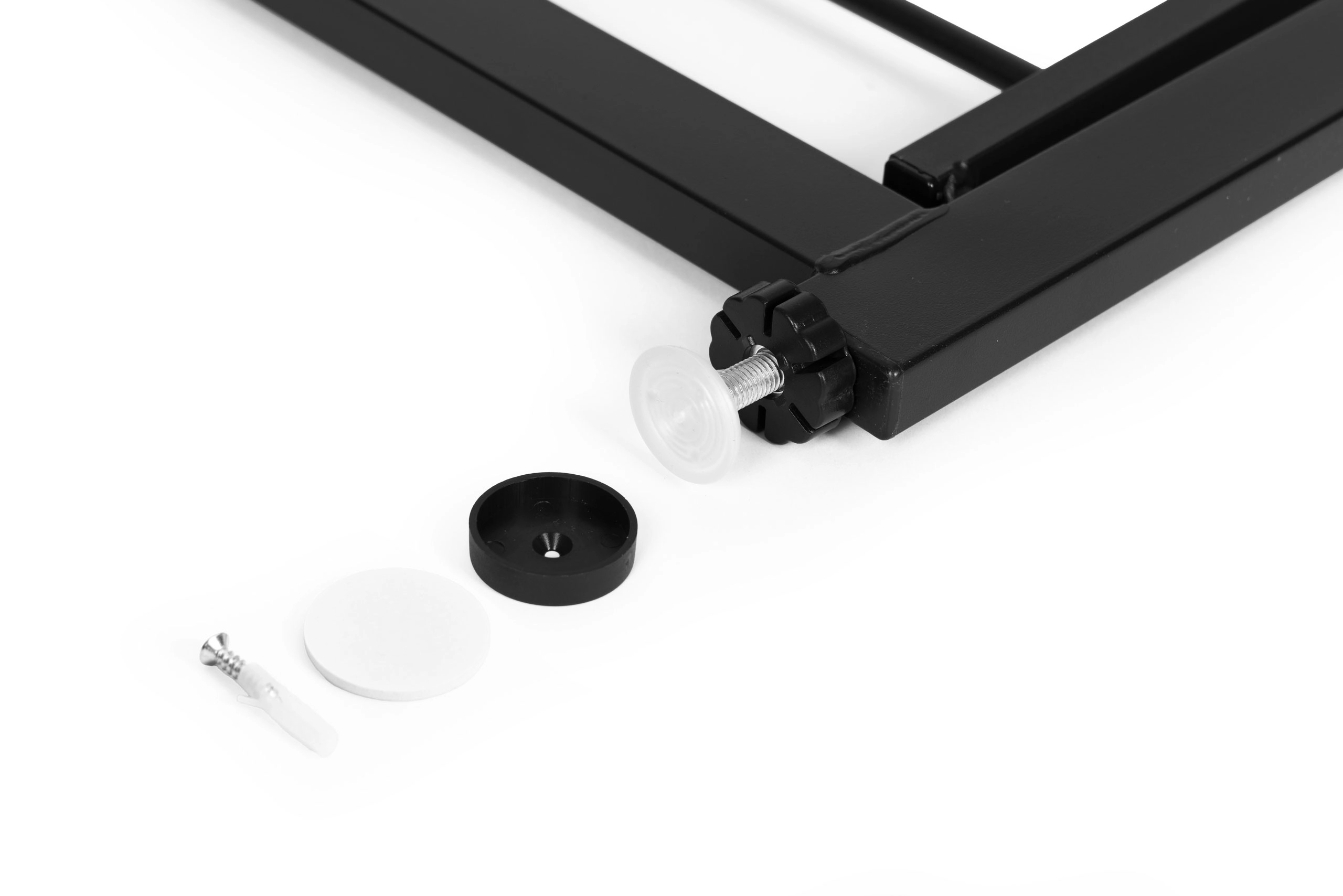 Instalare ușoară fără a fi nevoie de găurire datorită sistemului de montare cu presiune în 4 puncte, care menține ferm bariera în loc fără a deteriora pereții sau cadrul. Dacă preferați o montare permanentă, puteți folosi șaibele special formate și șuruburile incluse.