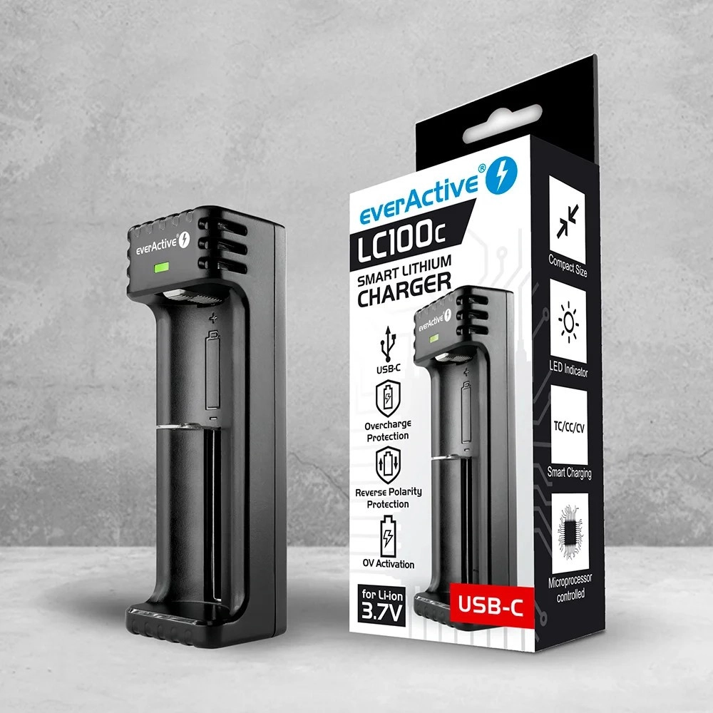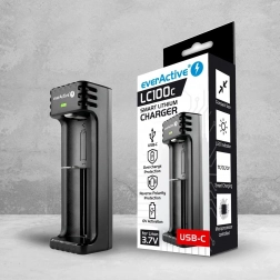 Încărcătorul EverActive LC100C este un dispozitiv fiabil și simplu pentru încărcarea unei singure baterii. Este echipat cu un microprocesor pentru controlul procesului de încărcare și oferă un curent de încărcare ridicat de până la 1000 mA.