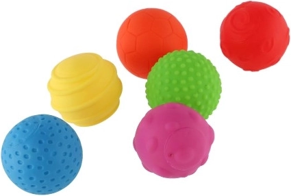 Set colorat de șase mingi moi cu texturi diferite pentru cei mai mici, care susține dezvoltarea motricității fine și grosiere, percepția senzorială și explorarea tactilă. Fiecare mingiuță are altă suprafață și culoare, la apăsare scârtâie și este sigură pentru sănătate. Excelent pentru stimularea mișcării și învățare distractivă.