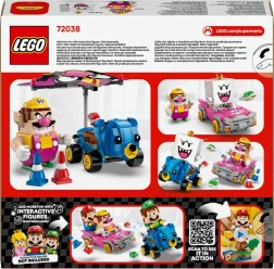 Trăiește curse rapide, derapaje strânse și dueluri palpitante cu carapace. Setul include 2 personaje – Wario și King Boo – și modele de kart detaliate Badwagon și Teddy Buggy cu roți funcționale. Badwagon are în plus un planor detașabil care poate fi montat și pe Teddy Buggy, astfel încât poți trece cursiv în timpul jocului între condus și „planare”.