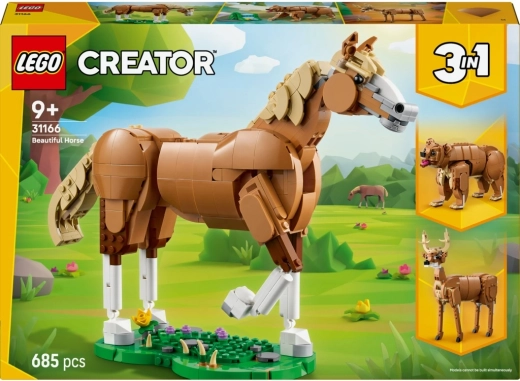 Descoperiți posibilități nelimitate de construcție cu setul Creator 3 în 1: cal frumos. Dintr-o singură cutie de piese construiți o figurină de cal articulată cu suport, care poate fi poziționată în trei moduri diferite: pe trei sau patru picioare, sau impunător pe picioarele din spate. Toate modelele se remarcă prin detalii atent lucrate și sunt perfecte atât pentru joacă, cât și pentru expunere în camera copiilor.