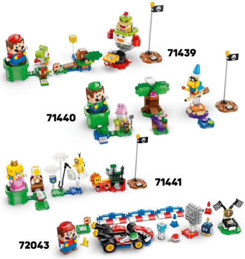 Condu, driftează și trage cu carapace din quadul lui Bowser și kartul Mach 8 al lui Yoshi, doboară ziduri și ferește-te de capcane. Prin adăugarea figurinelor interactive LEGO Mario, LEGO Luigi sau LEGO Peach (se vând separat) deblochezi sunete, reacții și recompense de joc ca în jocul digital – ideal pentru joacă solo sau în grup.