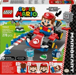 Trăiește curse dinamice în universul LEGO Super Mario. Pune-l pe LEGO Mario la volanul kartului standard, activează efecte sonore și vizuale Mario Kart, obține recompense digitale din cutiile cu semnul întrebării și învinge-l pe Bob-omb și pe înfricoșătorul Thwomp. Setul oferă elemente de pistă inteligent concepute, ușor de reconfigurat, și susține atât joaca solo, cât și în echipă.