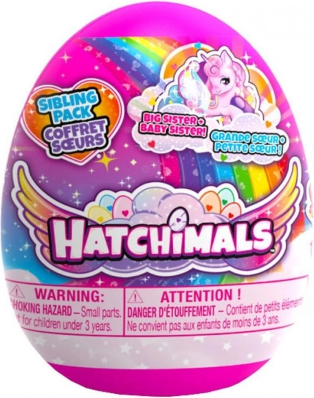 Fiecare familie Hatchimals are un aspect și un motiv unic inspirat de activități îndrăgite. Figurinele din aceste pachete vor oferi o lume magică a fanteziei și distracției pentru copii, care se vor bucura de ore nesfârșite de joacă. În pachet se găsesc două figurine, reprezentând o soră mare și una mică, permițând crearea unui număr nelimitat de povești și scenarii.