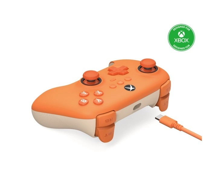 Designul său ergonomic într-o culoare portocalie elegantă oferă nu doar un aspect modern, dar și confort și stabilitate în timpul sesiunilor lungi de joc datorită mânerelor profilate.