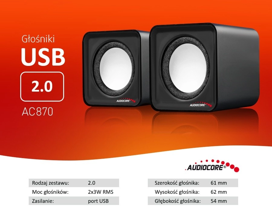 Bucurați-vă de muzica, filmele și jocurile preferate cu boxele compacte 2.0 Audiocore. Difuzoarele moderne asigură un stereo clar și plăcut, care ocupă puțin spațiu și completează perfect biroul cu monitor LCD.