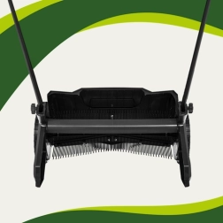 Înălțimea periilor 0–40 mm reglabilă permite colectare precisă pe diverse tipuri de suprafețe – de la gazon la alei pavate. Construcția ușoară cu roți mari asigură împingere și control ușoare. Datorită posibilității de reglare a înălțimii mânerului, lucrul este confortabil pentru persoane de staturi diferite.