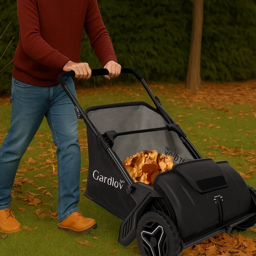 Mătură manuală practică GARDLOV cu deplasare fără motor adună silențios și ecologic frunze, iarbă și mici resturi. Datorită înălțimii reglabile a periilor 0–40 mm se adaptează diferitelor suprafețe, iar coșul colector spațios de 100 l înseamnă mai puține goliri și lucru mai eficient.