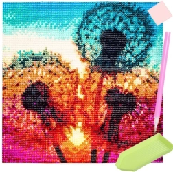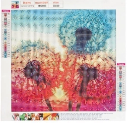 Mozaicul cu diamante este alegerea ideală pentru oricine caută un hobby liniștitor și în același timp satisfăcător. Așezi treptat pietricelele colorate pe grila autoadezivă tipărită în prealabil, urmând simbolurile, iar astfel ia naștere un tablou sclipitor cu motiv de păpădii. Lucrarea finală poate fi înrămată sau agățată ca atare.
