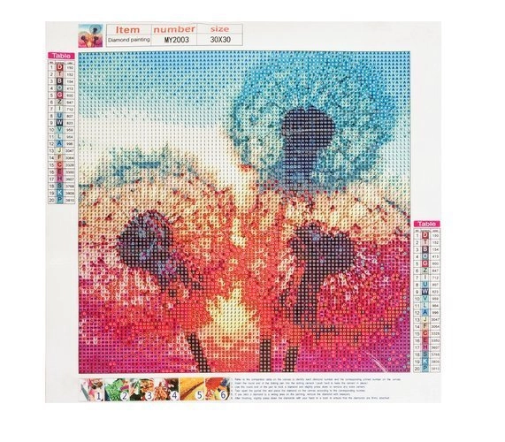 Pictură cu diamante 5D – mozaic cu motiv de păpădii 30 × 30 cm