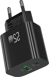 Încărcați până la două dispozitive simultan cu combinația de porturi USB‑C și USB‑A. Puterea de 25 W și suportul pentru încărcare rapidă asigură alimentarea eficientă fără așteptări inutile. Dimensiunile compacte și calitatea execuției fac din acest încărcător un ajutor de încredere acasă și în deplasare.