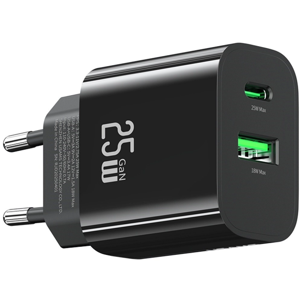 Încărcătorul compact de priză de la USAMS oferă o putere de 25 W, porturi USB‑C + USB‑A și tehnologie Fast Charging pentru o alimentare rapidă și sigură. Datorită cipului inteligent, tensiunii stabile și protecției la supraîncărcare, este ideal pentru smartphone‑uri, tablete și căști. Construcția ușoară și durabilă, în eleganta culoare neagră, este perfectă pentru călătorii.