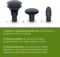 - 3 capete de masaj pentru utilizare individuală (zone sensibile, țesuturi profunde, masaj pe suprafață)