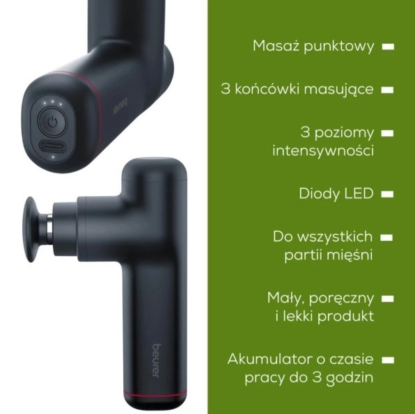 Pistolul de masaj compact MG 79 oferă activare și regenerare țintită a mușchilor într-un corp mic, dar puternic. Datorită 3 nivelurilor de intensitate, 3 capetelor interschimbabile și autonomiei de până la 3 ore pe baterie, este ideal pentru presiune de masaj punctuală delicată în zone sensibile, precum mușchii gâtului, tălpile și maxilarul.