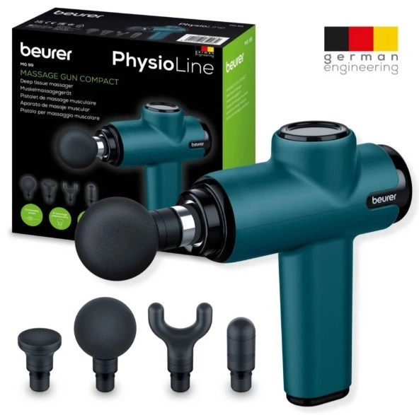 Pistolul de masaj compact Beurer MG 99 oferă un efect de masaj țintit pentru relaxarea tensiunii musculare. Oferă 5 niveluri de intensitate, 4 capete de masaj de calitate pentru diferite zone ale corpului și un mâner ergonomic pentru control ușor. Datorită greutății de doar 620 g, este ideal acasă, în călătorii și la antrenament.