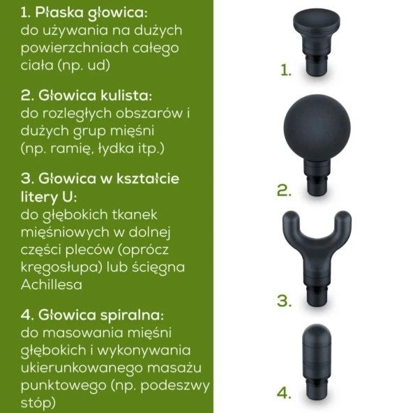 Datorită celor 4 capete interschimbabile și celor 5 trepte de intensitate, adaptați masajul exact nevoilor dvs. – de la gât și spate până la umeri și picioare. Mânerul ergonomic asigură o prindere confortabilă, iar indicatorul LED afișează clar starea bateriei.