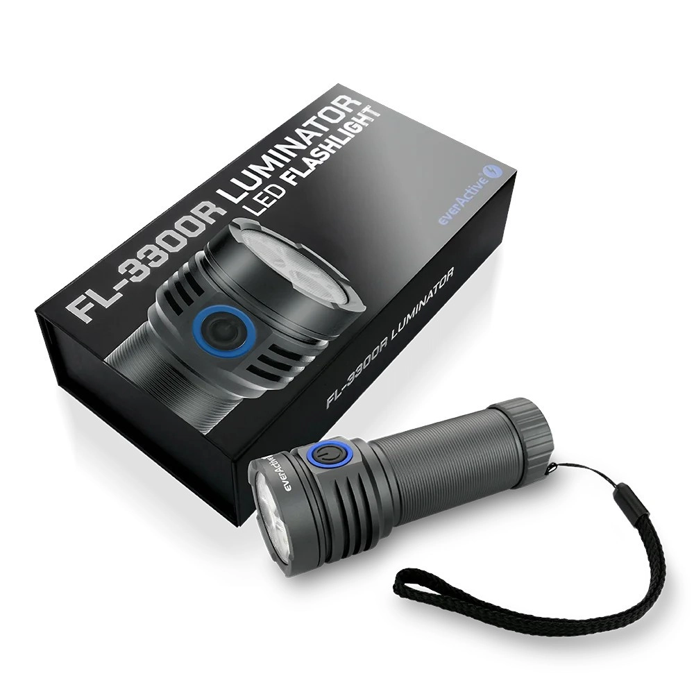 Căutați o lanternă fiabilă, care să facă față atât muncii pe teren, cât și utilizării acasă? Modelul EVERACTIVE Luminator FL-3300R îmbină puterea luminoasă ridicată, construcția robustă și operarea comodă cu o singură mână. LED-urile puternice OSRAM P9 (10 W fiecare) oferă un fascicul amplu, cu rază excelentă și acoperire largă.