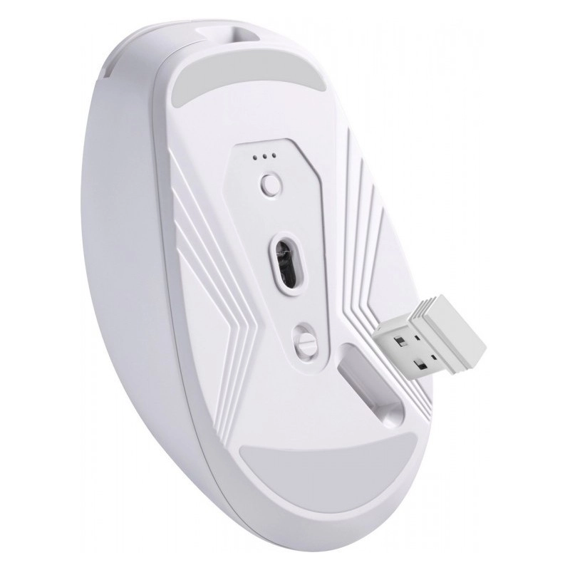 Bateria integrată cu o capacitate de 400 mAh asigură funcționare fiabilă fără necesitatea înlocuirii frecvente a bateriilor. Forma ergonomică, cu două butoane laterale și tălpi din teflon, oferă confort și alunecare lină pe diferite suprafețe.