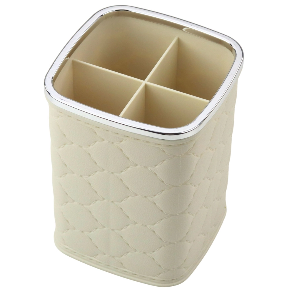 Păstrați ordinea pe măsuța de toaletă și în salonul profesional. Organizatorul pentru pensule, cu patru secțiuni separate, permite depozitarea clară a pensulelor de machiaj, creioanelor, rimelurilor, eyelinerelor și rujurilor, astfel încât să aveți mereu totul la îndemână.