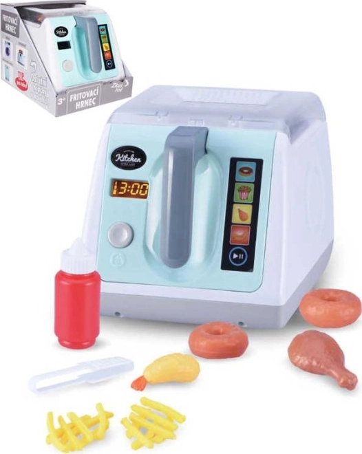 Această friteuză pentru copii oferă o experiență autentică de gătit – în timpul „prăjirii” se aprinde și sună ca o friteuză adevărată. Datorită alimentelor incluse, copiii se pot juca de-a fast-food-ul sau restaurantul, dezvoltându-și imaginația și motricitatea fină.