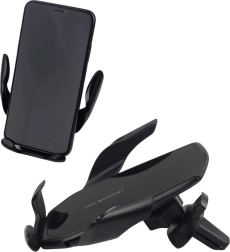 Suportul auto gravitațional pentru grilajul de ventilație asigură fixarea sigură și stabilă a telefonului chiar și pe drumuri denivelate. Datorită mecanismului gravitațional automat, este suficient să introduci telefonul, iar brațele îl vor strânge ferm singure. Cap rotativ 360°, tamponări moi din silicon împotriva zgârieturilor și design elegant negru potrivit pentru orice mașină.