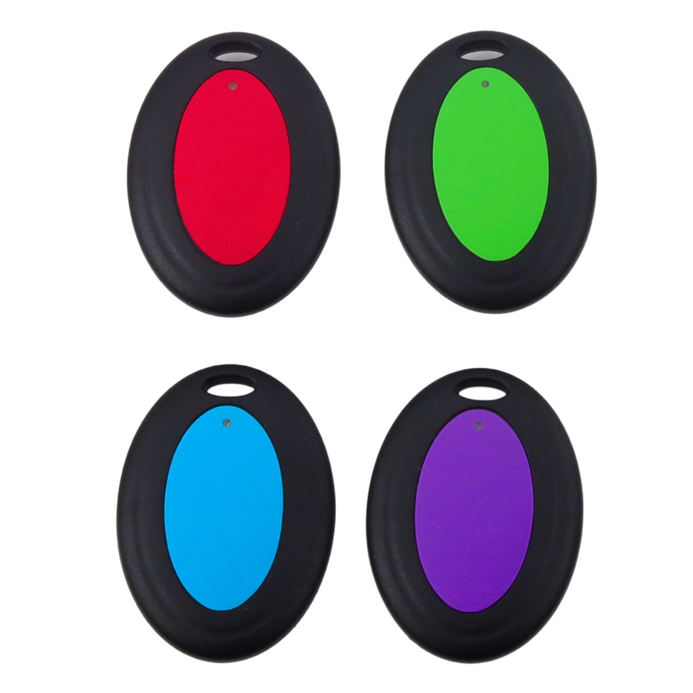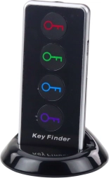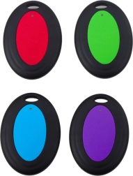 Fără căutări îndelungate. Setul conține 1 emițător cu lanternă LED integrată și 4 receptoare colorate, pe care le atașați de obiecte cu inelul pentru chei sau cu benzile adezive dublu‑adezive incluse. După apăsarea butonului corect se aude un semnal sonor de 75–80 dB și LED‑ul începe să clipească, astfel încât găsiți rapid obiectul chiar și pe întuneric.