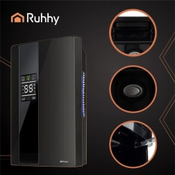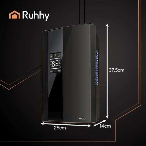 RUHHY combină dezumidificarea și purificarea aerului într-un singur dispozitiv compact, care funcționează fiabil în încăperi de până la 30 m². Datorită modulului Peltier este eficient energetic (90 W) și foarte silențios, astfel încât nu deranjează nici noaptea – util în dormitor și camera copilului. Modul UV Air Purify contribuie la un mediu proaspăt, iar dezghețarea automată Defrost asigură funcționarea fără probleme chiar și la temperaturi mai scăzute.