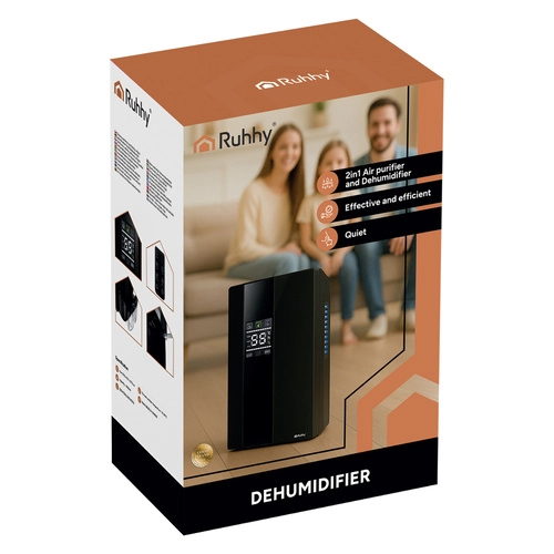 Bucură-te acasă de aer curat, uscat și proaspăt în fiecare zi. Dezumidificatorul și purificatorul de aer RUHHY 2‑în‑1 reduce eficient umiditatea, ajută la eliminarea mirosului de mucegai și îmbunătățește calitatea respirației. Oferă funcționare silențioasă 25–30 dB, setare inteligentă a umidității 40–70 %, control tactil, temporizator 1–24 h și telecomandă. Datorită funcției UV Air Purify revigorează aerul, iar cu rezervorul mare de 2000 ml este ideal pentru baie, bucătărie, dormitor sau pivniță.