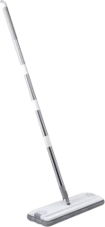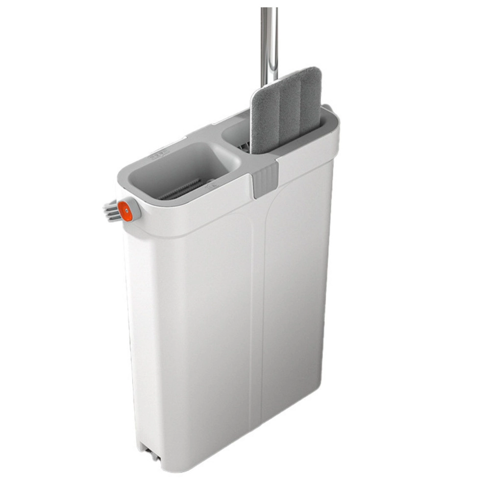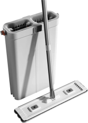 Găleata modernă cu două compartimente separă apa curată de cea murdară pentru o curățenie mai igienică și mai rapidă. Mopul plat cu bară telescopică reglabilă se adaptează ușor la înălțimea utilizatorului și ajunge în spațiile înguste, sub paturi sau dulapuri.