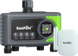 Regulatorul inteligent RAINPOINT cu gateway Wi‑Fi gestionează până la patru zone de irigare independente și este ideal pentru grădini mari. Antenele performante asigură semnal stabil până la 150 m în spațiu deschis, astfel încât poți planifica și controla irigarea de oriunde. Alege dintre 3 moduri (normal, pauză, ciclu și înmuiere) și 5 frecvențe (zilnic, zile impare, zile pare, interval, calendar personalizat) pentru o irigare precisă adaptată nevoilor plantelor.