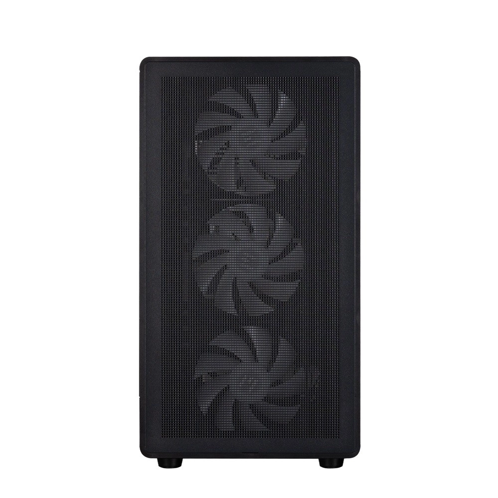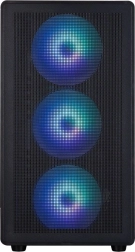 Carcasa M5 Black în format mATX Mini Tower îmbină un flux de aer excelent cu iluminare ARGB spectaculoasă. Datorită celor patru ventilatoare ARGB de 120 mm (3× față, 1× spate) și suportului pentru radiator de până la 360 mm în partea superioară, menține temperaturi stabile chiar și pentru configurații puternice.
