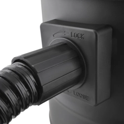 Pentru o versatilitate sporită, aspiratorul este echipat cu funcție de suflare – este suficient să conectați furtunul la orificiul superior și puteți sufla frunzele, praful și murdăria mai mare de pe alei sau din garaj. Întărirea metalică internă a furtunului de aspirare protejează împotriva deteriorării și înfundării cu particule fine, crescând astfel siguranța și durata de viață a dispozitivului.