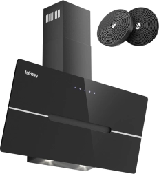 Hota înclinată, neagră, ISEASY TV5290D4-CC-I2 se remarcă printr-un design elegant, care economisește spațiu și se potrivește perfect în bucătăriile moderne. Aspirarea puternică de până la 524 m³/h face față aburilor, grăsimii și mirosurilor din bucătărie, în timp ce max. 58 dB asigură o funcționare plăcut de silențioasă. Panoul tactil intuitiv simplifică utilizarea, iar iluminarea LED 2 × 1,5 W luminează uniform blatul de lucru.