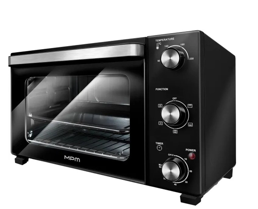 MPM MPE-16/T este un cuptor electric mini, practic, care îmbină dimensiunile compacte cu o capacitate mare de 35 l. Datorită sistemului cu aer cald și spiralei duble, obții o crustă crocantă și un interior suculent la carne, produse de patiserie și prăjituri. Geamul dublu păstrează căldura în interior și reduce consumul de energie, în timp ce panoul frontal rece te protejează de arsuri.