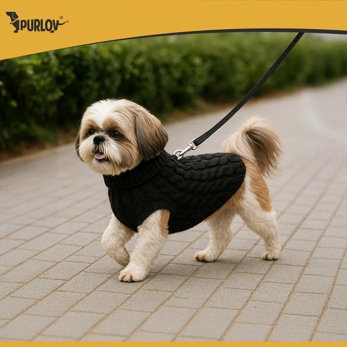 Puloverul tricotat călduros PURLOV îți menține animalul de companie la cald și confortabil chiar și în zilele reci. Firul acrilic fin este plăcut la atingere, nu irită pielea și datorită elasticității nu limitează mișcarea. Se îmbracă ușor, are 2 orificii pentru lăbuțele din față și un practic orificiu pentru lesă.