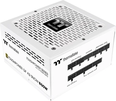Thermaltake Toughpower GF A3 850 W Snow este proiectată pentru alimentarea stabilă și eficientă a PC-urilor performante. Datorită 80 PLUS Gold atinge o eficiență ridicată, iar cu corecția activă a factorului de putere (PFC) reduce pierderile și economisește energie. Execuția modulară permite utilizarea doar a cablurilor necesare, îmbunătățind fluxul de aer și aspectul configurației.