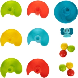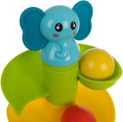 Această jucărie educativă și senzorială este ideală pentru copiii de la 18 luni. Susține dezvoltarea motricității fine, coordonarea mână–ochi și învățarea cauză–efect. Datorită asamblării ușoare și construcției compacte, o puteți monta, demonta rapid și lua cu voi în călătorii. Turnul cu motiv de elefant și cele șase bile colorate reprezintă un super cadou.