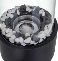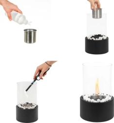 - Funcționare sigură: panouri de sticlă care protejează flacăra de atingere și curent