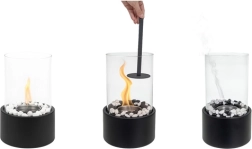 Rezervorul din oțel cu fibră ceramică absorbantă prelungește timpul de ardere și ușurează utilizarea. Este inclus stingător/închizător (închidere flacără) pentru o stingere comodă. Montajul simplu și padurile din spumă anti-zgâriere pentru mobilier fac din acest biocamin o soluție practică pentru utilizare zilnică.