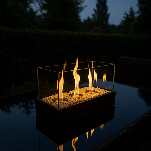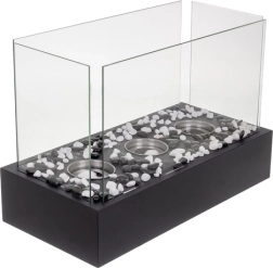 Elegantul biocamin KAMINER este ideal pentru apartament, casă și terasă. Funcționează cu bioetanol și datorită arderii curate nu produce fum, funingine sau miros neplăcut – nu aveți nevoie de coș. Cele patru panouri din sticlă protejează flacăra de contact și curent, în timp ce corpul negru, de tip loft, completează perfect un interior modern.