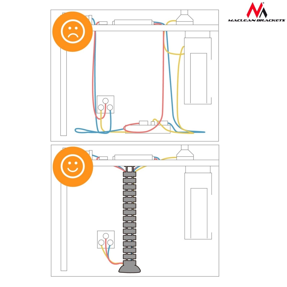 Organizați cablurile acasă și la birou. Organizatorul de cabluri MACLEAN MC-768 S, în finisaj argintiu, este conceput pentru a preveni încâlcirea, a proteja cablurile împotriva deteriorării și a păstra spațiul dumneavoastră curat și profesional. Se potrivește perfect pentru configurații de computer, sisteme audio și echipamente de birou.