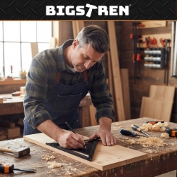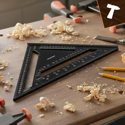 Echerul de tâmplărie BIGSTREN cu dimensiunile 30 × 30 cm este conceput pentru trasare și măsurare rapidă și precisă. Datorită combinației de unghiuri de 90° și 45°, scale în cm și inci și muchie zimțată, gestionați tăieturi drepte și oblice, transferul dimensiunilor și alinierea marginilor.