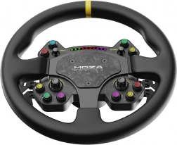 Volanul oferă control bogat: 10 butoane mecanice cu feedback tactil, două joystick-uri universale și o pereche de encodere rotative. Conectarea la toate bazele MOZA este facilă – modelele R21, R16 și R9 funcționează wireless, în timp ce R5 utilizează o conexiune cablată stabilă cu slip-ring. Eliberarea rapidă MOZA permite schimbarea fulgerătoare a volanului în funcție de tipul cursei.